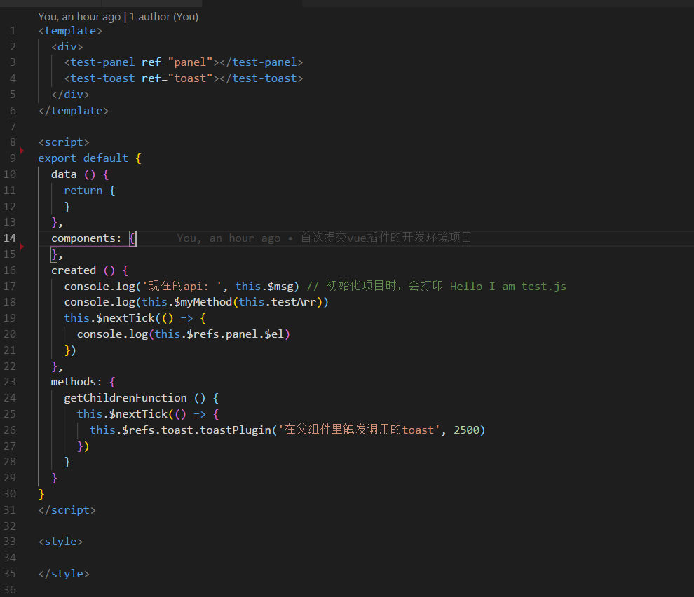 test.js 里面引入的两个vue 文件,这两个文件就是我们需要开发的组件样式。