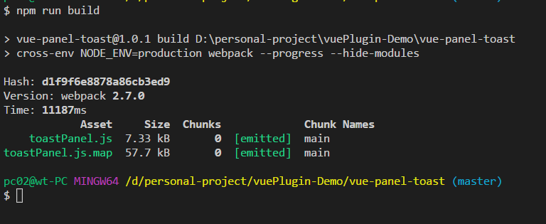 测试完成,可以实现我们的想要的内容。下面我们就要把我们的内容打包发布到npm 上去。