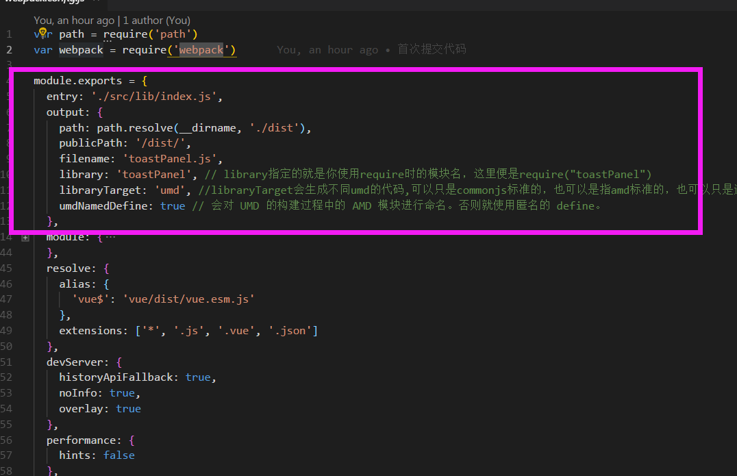 var path = require('path') var webpack = require('webpack') module.exports = { entry: './src/lib/index.js', output: { path: path.resolve(__dirname, './dist'), publicPath: '/dist/', filename: 'toastPanel.js', library: 'toastPanel', // library指定的就是你使用require时的模块名,这里便是require("toastPanel") libraryTarget: 'umd', //libraryTarget会生成不同umd的代码,可以只是commonjs标准的,也可以是指amd标准的,也可以只是通过script标签引入的。 umdNamedDefine: true // 会对 UMD 的构建过程中的 AMD 模块进行命名。否则就使用匿名的 define。 }, module: { rules: [ { test: /.css$/, use: [ 'vue-style-loader', 'css-loader' ], }, { test: /.vue$/, loader: 'vue-loader', options: { loaders: { } // other vue-loader options go here } }, { test: /.js$/, loader: 'babel-loader', exclude: /node_modules/ }, { test: /.(png|jpg|gif|svg)$/, loader: 'file-loader', options: { name: '[name].[ext]?[hash]' } } ] }, resolve: { alias: { 'vue$': 'vue/dist/vue.esm.js' }, extensions: ['*', '.js', '.vue', '.json'] }, devServer: { historyApiFallback: true, noInfo: true, overlay: true }, performance: { hints: false }, devtool: '#eval-source-map' } if (process.env.NODE_ENV === 'production') { module.exports.devtool = '#source-map' // http://vue-loader.vuejs.org/en/workflow/production.html module.exports.plugins = (module.exports.plugins || []).concat([ new webpack.DefinePlugin({ 'process.env': { NODE_ENV: '"production"' } }), new webpack.optimize.UglifyJsPlugin({ sourceMap: true, compress: { warnings: false } }), new webpack.LoaderOptionsPlugin({ minimize: true }) ]) }